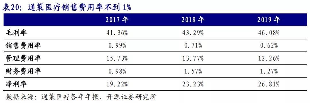 核心在于,通策医疗的三费比例非常低,突出表现在销售费用率上。