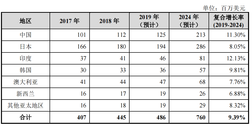 根据 MarketsandMarkets的市场数据,亚太地区在2019-2024年期间,将引领全球色谱填料市场的增长,预计将实现9.39%的复合增长率,市场规模占比将从 2018 年的22.44%增长至2024年的25.39%。