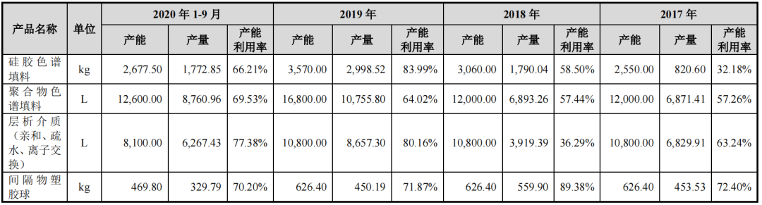 先从整体的营收和净利入手,公司近三年营收保持了44-59%区间的高速增长,而净利润增长则是在近两年开始了加速,由于还更新2020年年报,推测可能是主要产品聚合物色谱填料销量大幅增长和亲和层析介质Protein A的推出增加了业绩的新增量,也可以明显看到这两项分产品收入毛利出现了明显提升。(公司注册稿中提到主要系高毛利产品收入占比提高,以及公司营运效率提升,期间费用率降低所致。)