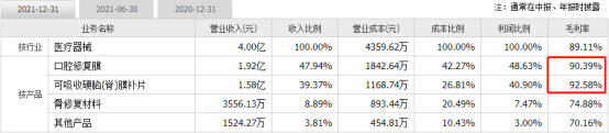 当你理解完了公司的产品,你也就理解了为什么公司在口腔修复膜、可吸收硬脑膜片拥有非常高的毛利率,可再生医学这个技术门槛非常高。