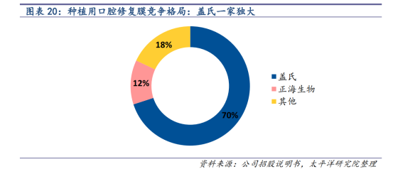 为什么我会把正海生物称之为:再生医学的强悍新锐,请看下图,正海生物市占率12%,盖氏市占率70%,正海生物目前来看只能算是新兵蛋子,发展空间很大。