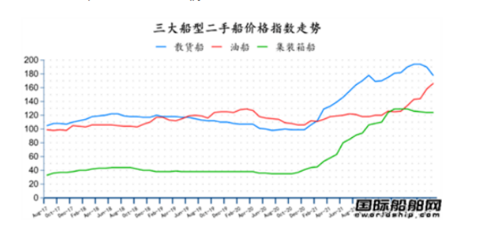 首先是下游的航运运价,航运运价涉及船舶本身下游船东的需求,以及反映了船东本身在进行一个船舶航运过程当中的盈利能力。分三大主流船型看:集装箱船、散货船和油船。