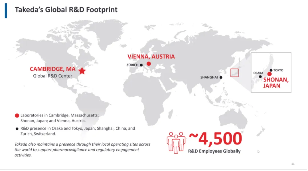 毕竟,武田制药已是成熟的全球化药企,全年收入规模达300亿美元,且75%的收入来自美国、欧洲等核心海外区域。支撑这一成绩的底层逻辑,是突出的全球研发以及商业化能力。