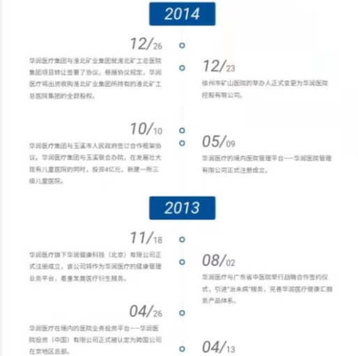 2014年,华润医疗拿到了徐矿医院和淮矿医院的举办权,后两者的管理权也注入了上市公司当中.