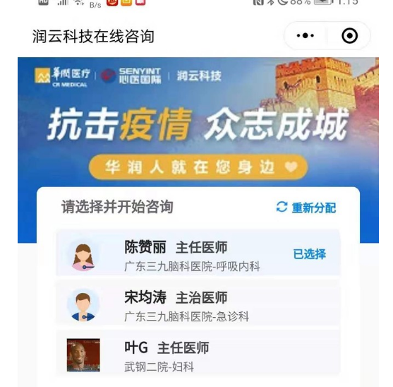 插播华润医疗的特大利好消息: 武汉润云科技的在线视频咨询今天正式开通上线.