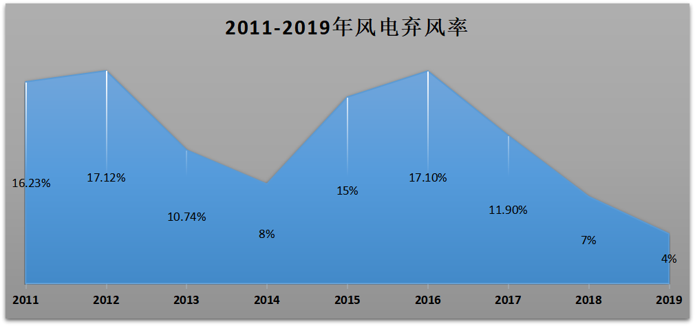 2017年,我国北部六个省区(甘肃、新疆、宁夏、黑龙江、吉林、内蒙古)的风电投资检测预警为红色,简称“红六省”。“红六省”的风能丰富,但由于当地负荷有限,风电外送通道不顺畅,导致这些区域弃风率高企,风电投资预警为红色。2018年,内蒙古、黑龙江的红色预警转为橙色,宁夏转为绿色,甘肃、新疆、吉林继续为红色预警,“红六省”变为“红三省”。当时全国平均弃风率下降至7%。2019年,吉林解除了红色预警,由红色转为绿色,“红三省”变为“红二省”。2019年弃风率已经下滑低至4%。