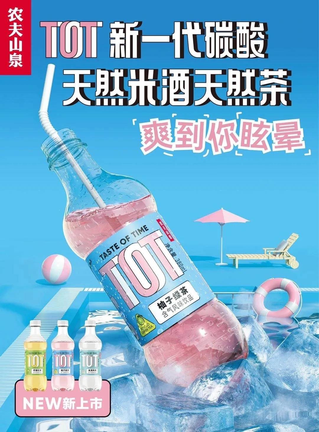 近期,农夫山泉上线了新品TOT气泡饮,此款气泡水有米酒、柠檬红茶、柚子绿茶三种口味,目前在天猫旗舰店内预售价6元一瓶。同时这些新品会陆续在北京、上海、广州、深圳等城市上架。