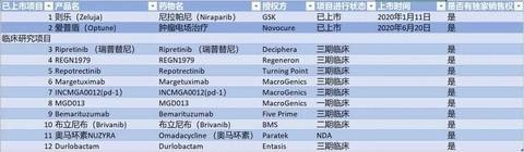 而信达生物和中国生物制药则在PARP抑制剂中缺失了一环。