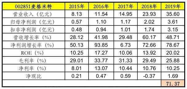 今天介绍的主角是麦格米特,名字很好听,不过相信大多数朋友听了这个名字后都不知道这家公司是干嘛的。关注到麦格米特,是因为这家公司业绩较好,先来看一下历史成绩单。可以看到近2年净利润增速较快。