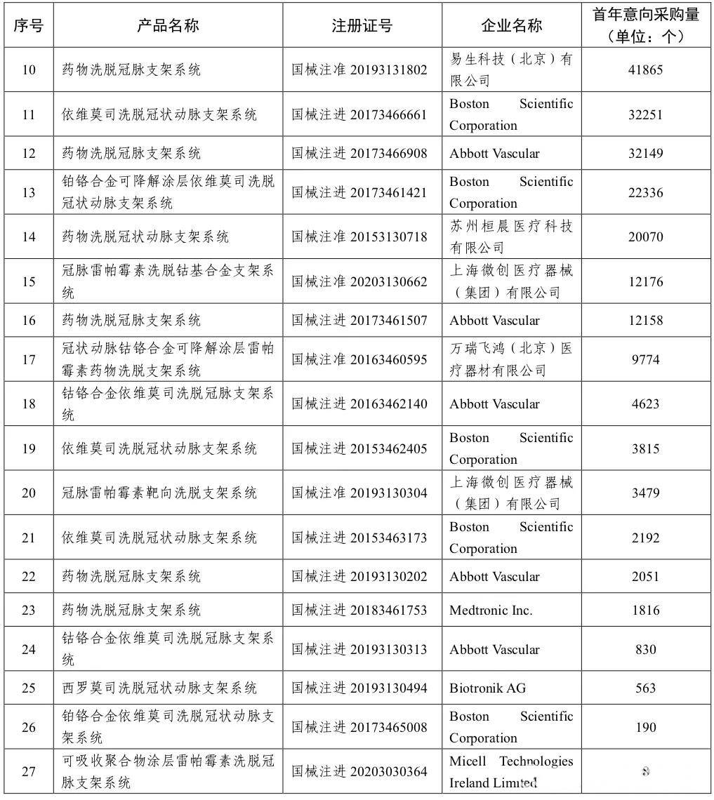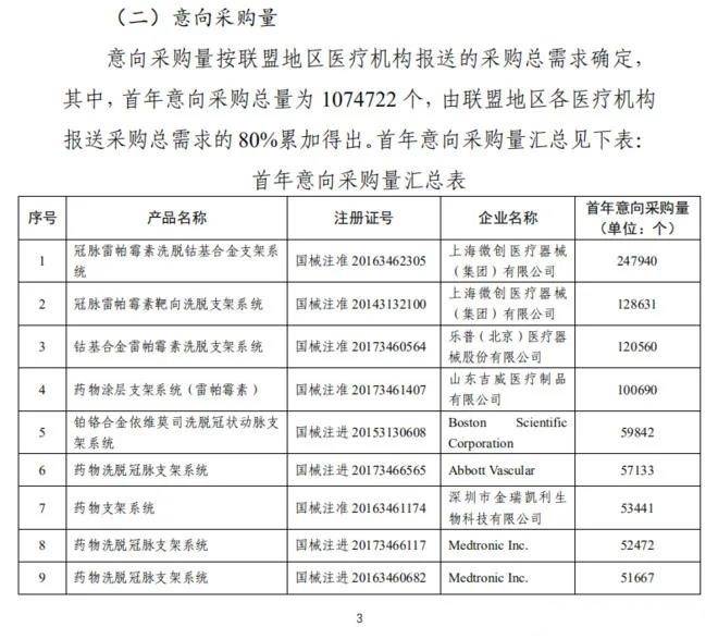 (解读:中标企业获得的采购量是由医疗机构申报的需求量所决定,并非像药品集采规则中最低价者获得最大的量/份额,有利于微创、乐普这些意向采购量大的头部企业)