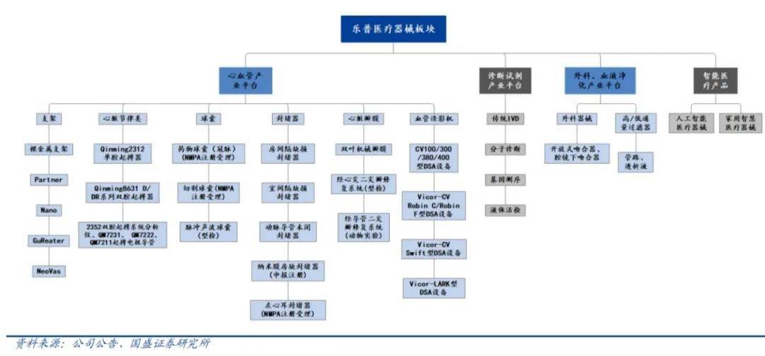 2. 药品板块主要分为原料药业务和制剂业务(仿制药),实现营收38.5亿元,占比49%,同比增长21%。乐普通过 2013 年以来的一系列外延并购构筑了心血管用药的全产业链格局,具备原料药-制剂一体化竞争优势。作为公司长期稳定的现金流业务,将为公司重大创新器械和创新药提供战略发展的窗口期和导流载体。