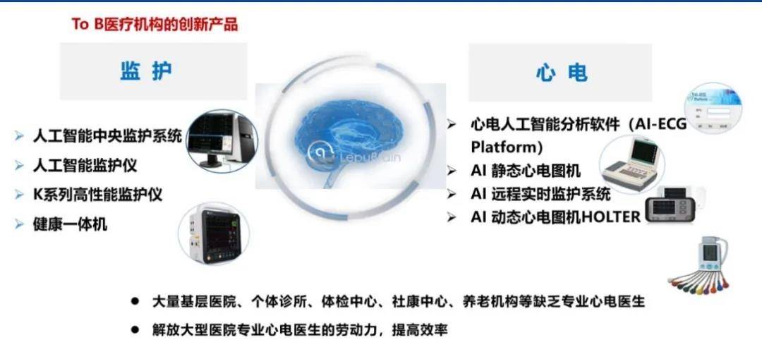 好处很多:一是对大型医院可提高工作效率,提升诊断水平,二是对大量基层医院、个体诊所、体检中心、社区医养中心等,可解决缺乏专业心电医生的问题,三是可使患者在家中像监测血压、血糖一样进行心电监测,四是使得可穿戴设备(手表、手环等)真正提供医用水平的数据,促进可穿戴设备进一步得到更广泛的应用。按照乐普医疗的人工智能心电类医疗产品研制计划,公司正在基于AI-ECG研发一系列产品。
