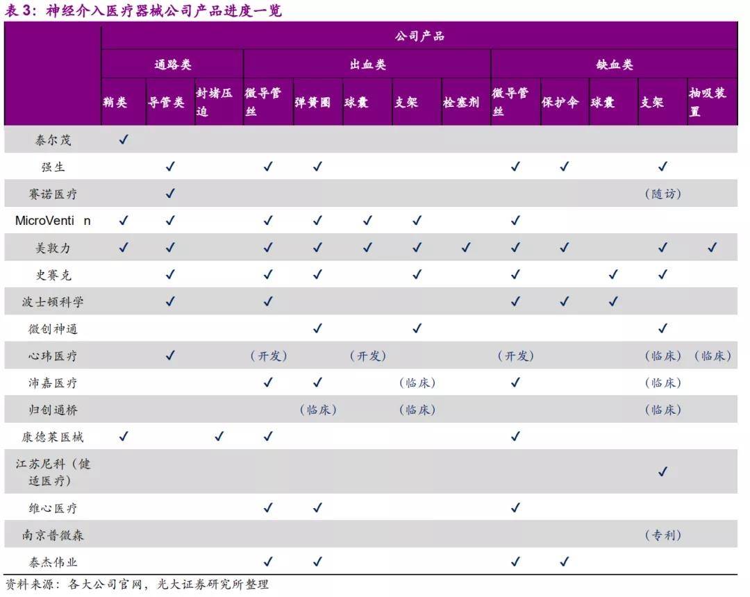 2、神经介入:该领域的竞争格局和我们在之前的推文《高值耗材没有出路?百亿器械新蓝海被哄抢,高瓴、红杉已纷纷下注!》已经介绍过,沛嘉目前在神经介入领域已形成较为齐全的产品线。