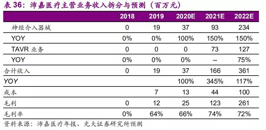 2、公司产品层面(两个重磅产品今年获批的预期):根据沛嘉的招股材料,2020年3季度将公司的第一代TAVR产品TaurusOne®提交注册,预计2021年第一或第二季度商业化。