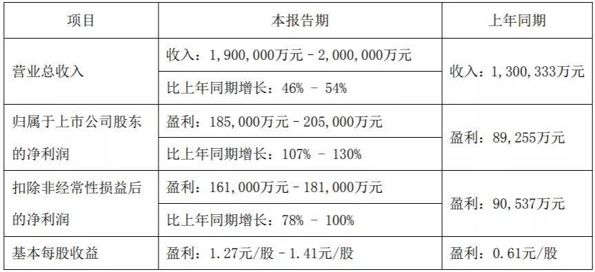 1月25日晚,阳光电源发布业绩预告:预计2020年度归母净利18.50亿元-20.50亿元,同比增长107%-130%;基本每股收益盈利1.27元~1.41元。