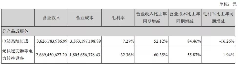 但是占营业收入半壁江山的电站系统集成业务,毛利率仅为7.27%;逆变器的毛利率为32.36%。