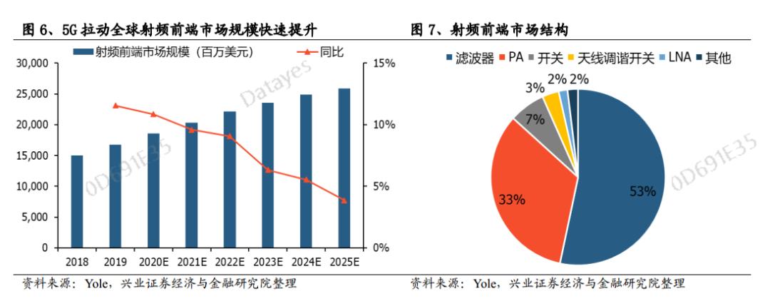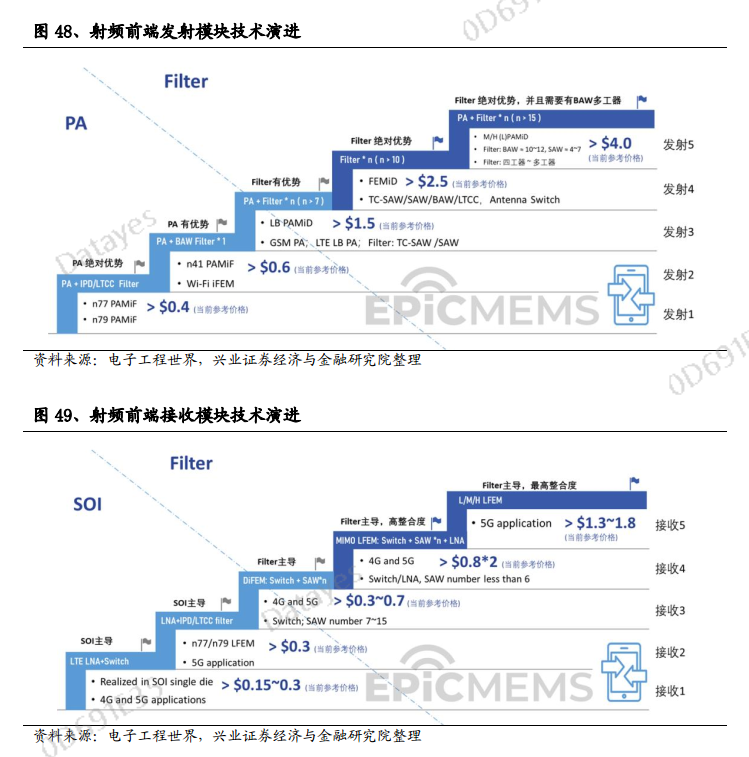 华为事件后,国内安卓品牌纷纷对国产供应链需求大幅提升,叠加5G化带来硬件面积约束,使得当下成为国内射频厂商从低单价的分立器件向高单价的前端模组转型的关键节点,有望重塑日美厂商垄断行业的格局。
