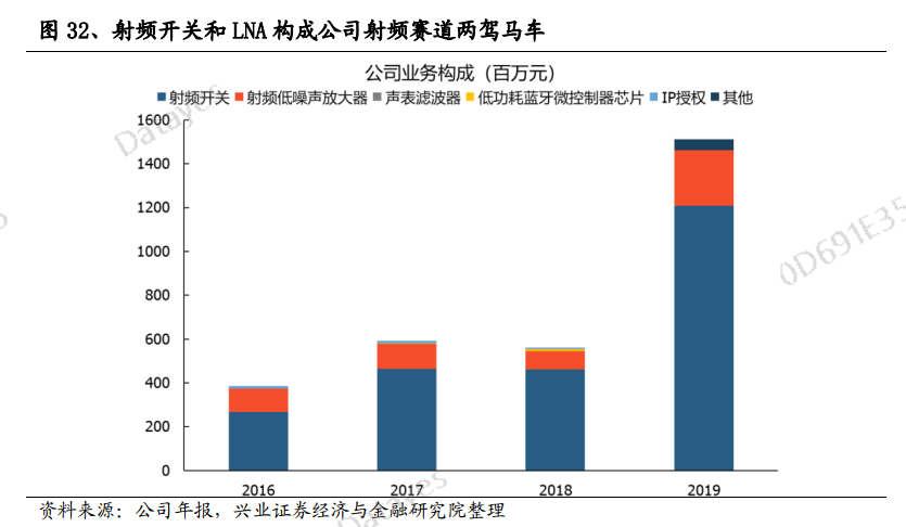公司的主要业务为射频开关(普通开关与天线调谐开关)、射频低噪声放大器(LNA)产品和其他(主要为接收模组业务)。