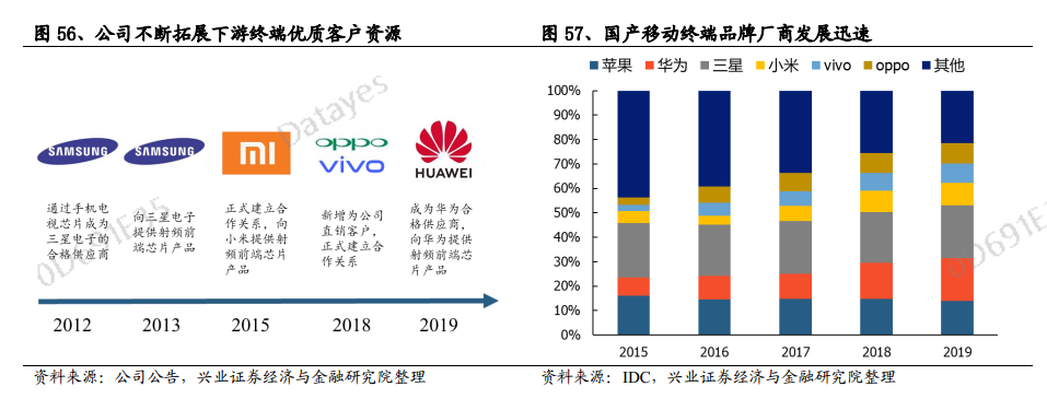 三星:公司自2012年开始在射频开关领域导入三星供应链,在手机终端领域合作逐渐紧密,目前已成为三星中低端机型射频开关的主要供货商。