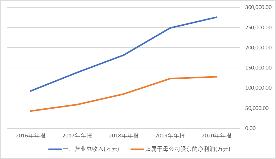 2020年年报显示,公司实现营业收入27.54亿,同比增长10.64%;实现净利润12.79亿,同比增长3.52%。