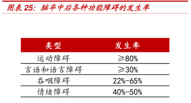 基于卒中的发病率和术后康复渗透率的双升,无论是康复医疗服务(康复医院)还是康复医疗相关器械都存在广阔的前景,不过投资上要考量康复二类器械的壁垒和康复连锁医院的可复制性和盈利能力等存在的问题。器械类相关上市公司包括伟思医疗、翔宇医疗,服务类的包括三星医疗等公司,这里不再一一列举。