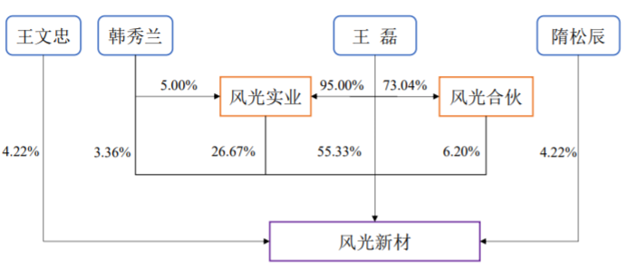 这种心态也反映在股权上,王磊、隋松辰、王文忠、韩秀兰一家四口直接或间接控制了风光新材近乎100%的股权,一个典型的家族企业。