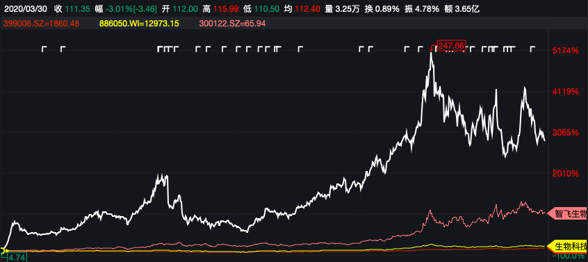 紧接着整体医药板块出现了大面积的回调,作为疫苗龙头的康泰生物和智飞生物在这个阶段的走势几乎是相同的,市场开始担忧新冠疫苗的研发进程。