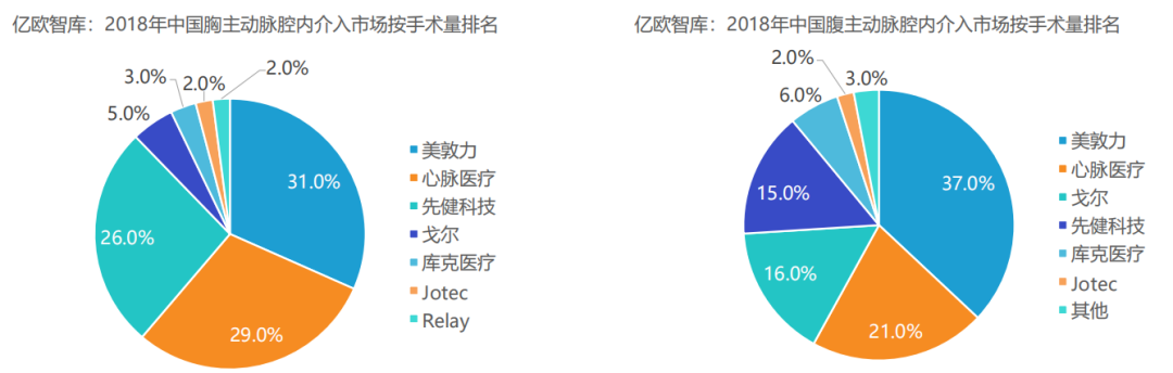 - 外周/主动脉介入组合:主动脉介入层面,主动脉病又分为主动脉夹层、胸主动脉瘤、腹主动脉瘤,从国内市场份额角度看,国产厂商第一和第二分别为心脉和先健。