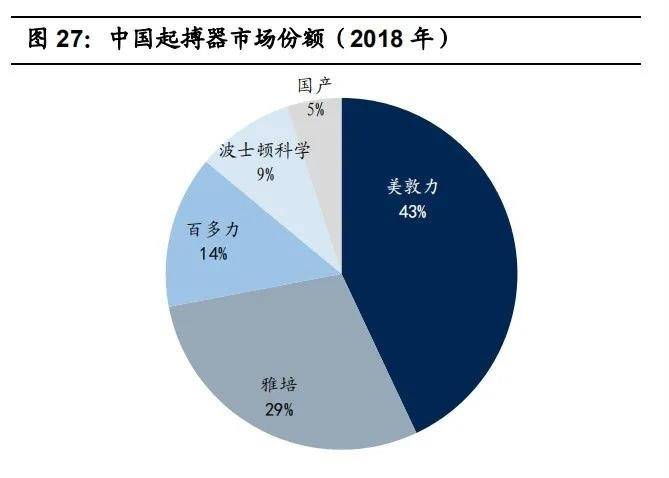 ● 起搏器:起搏器主要用于治疗心动过缓,目前国内起搏器市场前景广阔、渗透率低、外资头部企业占据大部分市场。国内起搏器植入量2009-2017年复合增长率为10.9%。2018年国产起搏器植入量市场份额仅为5%,95%的市场份额被少数几家进口巨头厂商垄断,国产替代正在缓慢进行。.