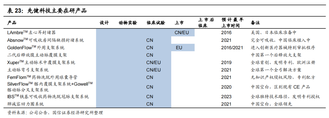 结合A股同行公司的业绩情况和公司的研发进度,预估先健科技未来有可能出现业绩爆发的因子有两方面,一是主动脉/外周介入行业的高景气,二是铁基支架在海外获批的预期催化。