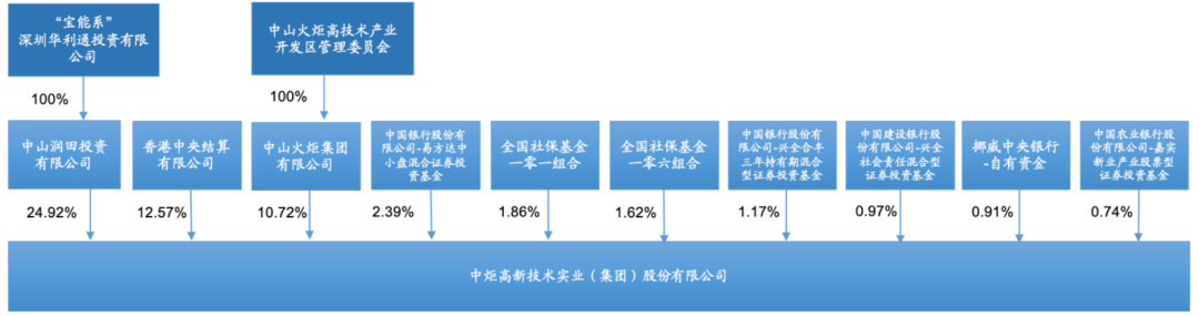 历史上,公司实际控制人与大股东为中山火炬区国资委,持股比例10.72%。2015年 4月起宝能系的前海人寿开始二级市场增持公司股份,并于2018 年 9月将持有 的24.92%股份全部转让给同为宝能系的中山润田投资有限公司,同年11 月董事会换届。
