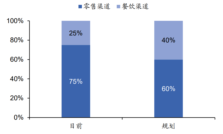 零售渠道是公司最主要渠道,目前占比达到75%。但从规模来看,餐饮渠道是更值得关注的渠道。