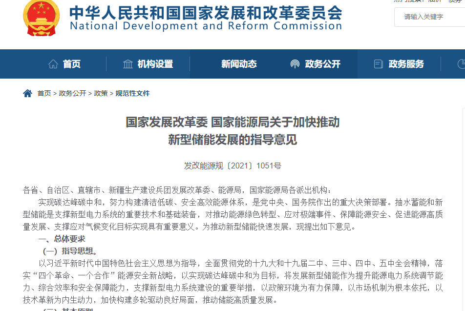 7月23日,国家发改委、国家能源局发布《关于加快推动新型储能发展的指导意见》。