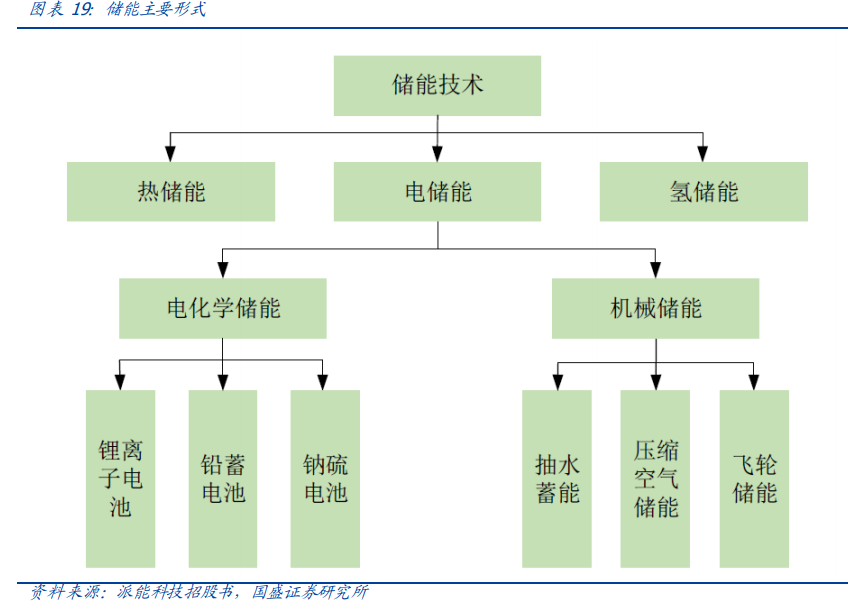 电化学储能包括锂离子电池储能、铅蓄电池储能、钠硫电池储能;机械储能包括抽水蓄能、压缩空气储能、飞轮储能。