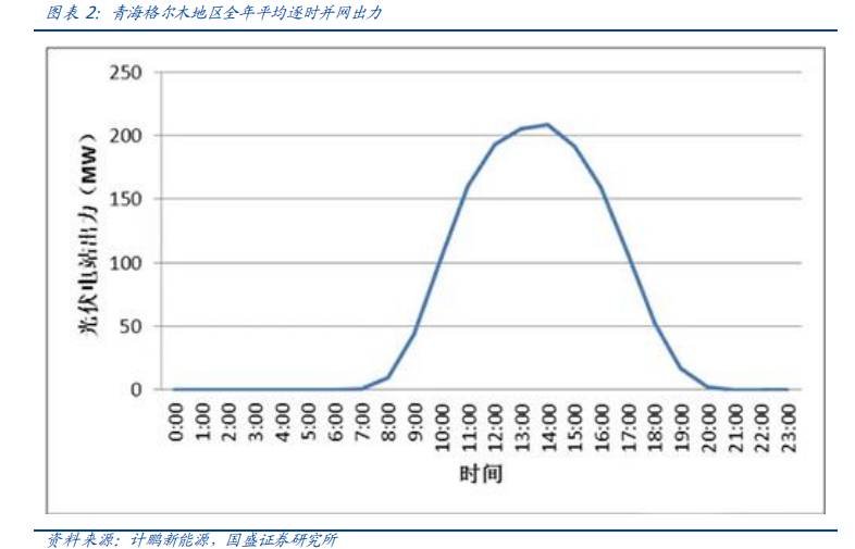光伏出力日内波动幅度高达100%,峰谷特性鲜明,正午达到当日波峰,正午前后均呈均匀回落态势,夜间出力为0。