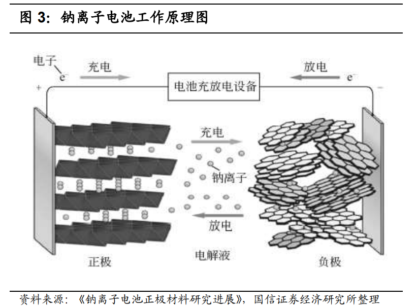 从技术路线来看,钠离子电池与锂离子电池的工作原理相同,均为嵌脱式电池。