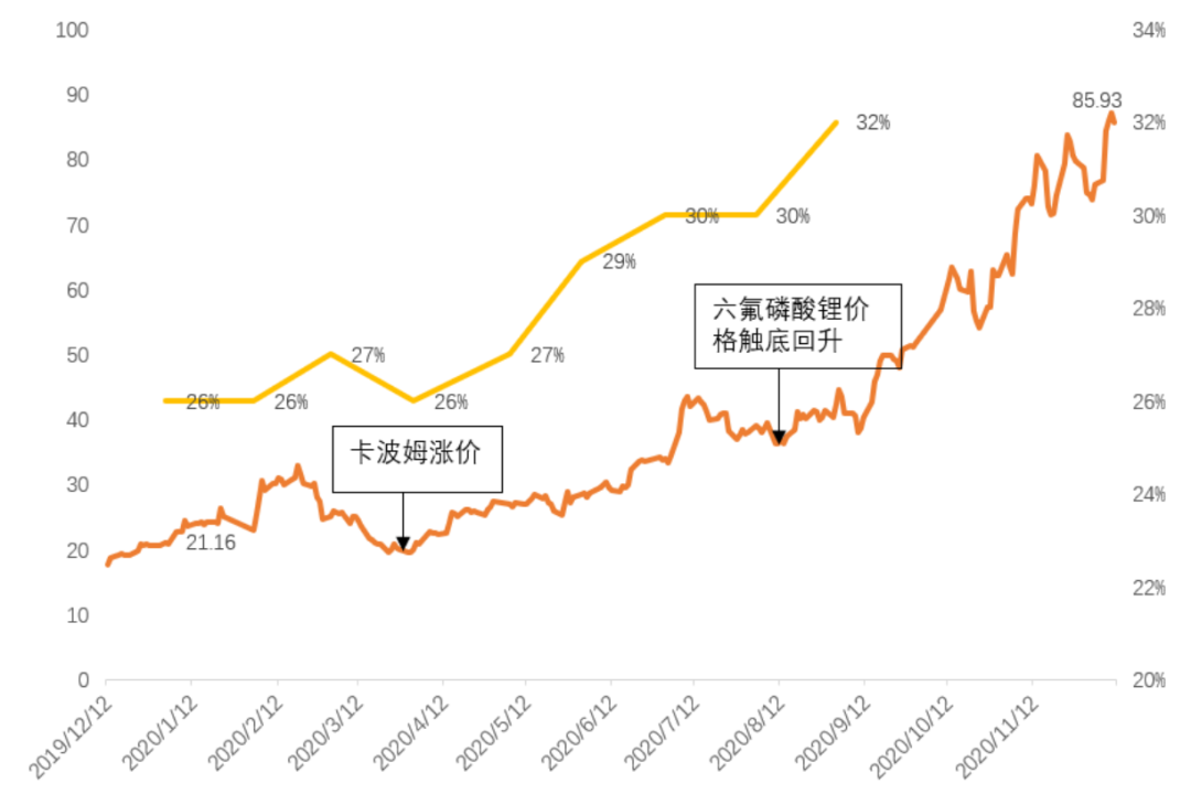 通过以上的分析可以发现,电解液价格走势取决于成本驱动,其中原料最重要的组成部分六氟磷酸锂的价格具备很强的周期属性,价格取决于供需结构。成本和客户订单是电解液的核心竞争力所在。