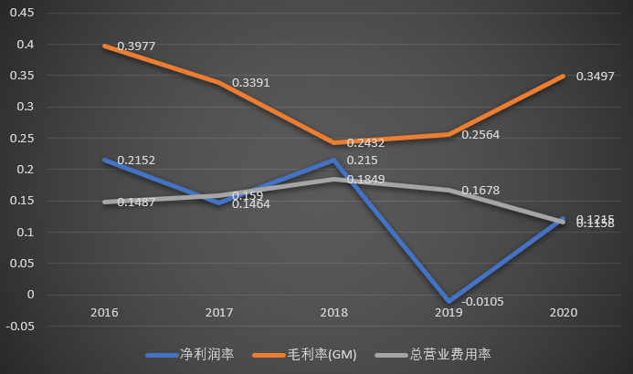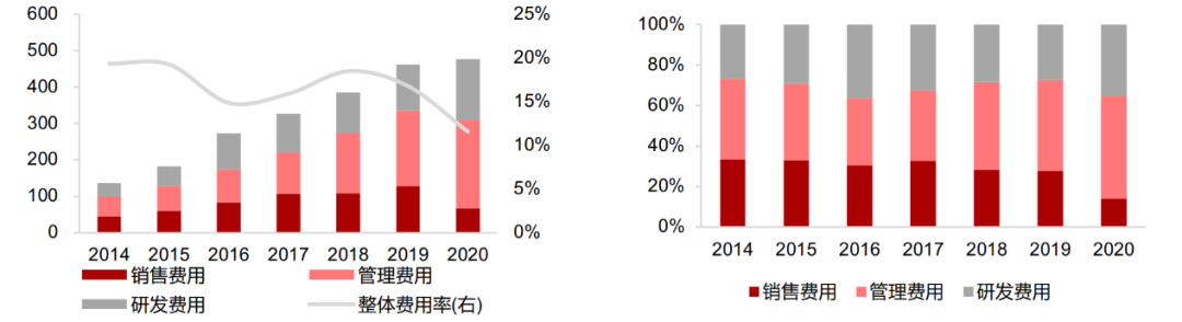 2020年公司整体费用率12%,其中研发费用占比35%,管理费用51%,销售费用14%