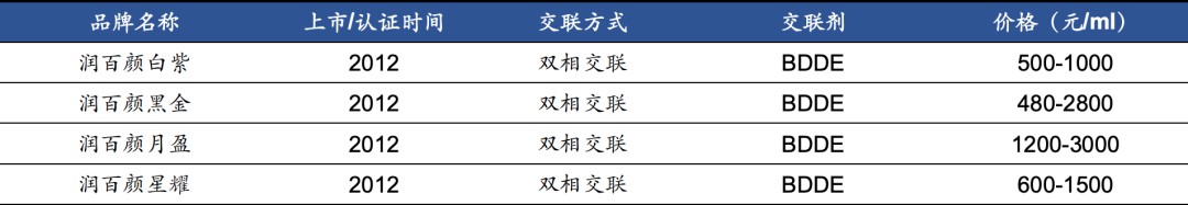 其实,2016年,公司旗下的润百颜升级版,“润致”就成功获批了,只是2018年才开始推向市场,这个子品牌,就是华熙旗下主打中高端定位的品牌了,由于产品添加了利卡多因(麻醉用品),所以,注射起来用户会觉得舒适度较高(很多产品注射起来是比较痛的),这样的产品定价,自然就会比较高,2500-4000元的样子。