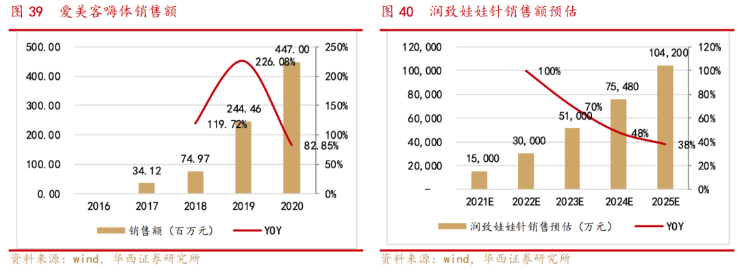 因此,所长认为,华熙的娃娃针,有望重演甚至超越爱美客的嗨体,故,华西证券对华熙的娃娃针销售额作出下图预测:
