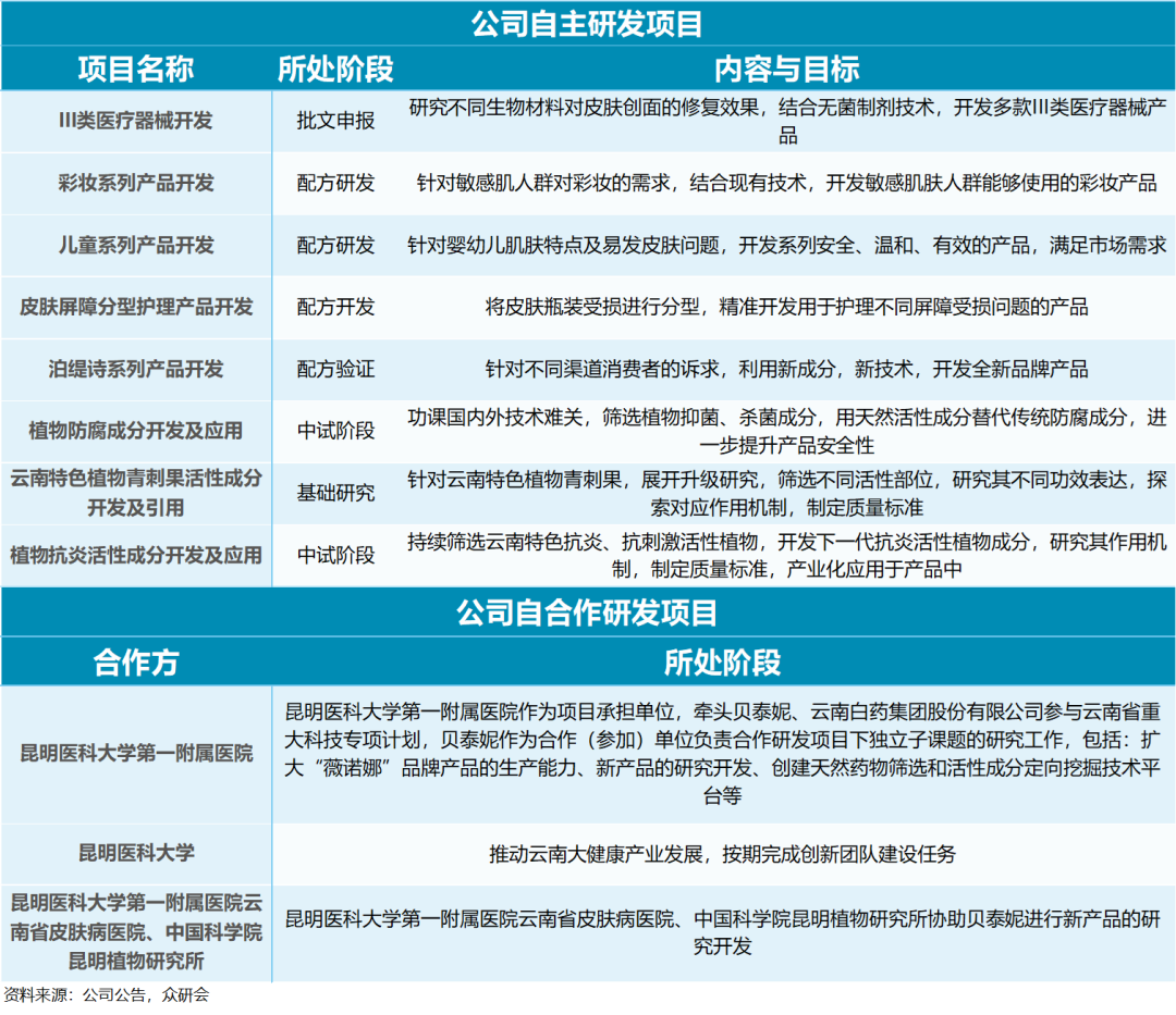 研发能力强且具备十分有效地转化能力。截至2020年底,公司研发人员共104人,境内累计有效专利共50项。公司围绕特色植物提取位有效成分制备与敏感肌护理领域研究的自主研发技术,拥有核心技术11项,并且应用核心技术实现的销售收入占公司主营业务收入的比例高达95%以上。