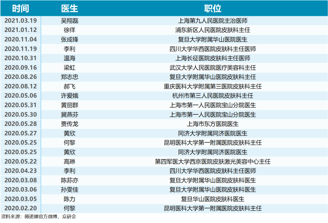 新媒体与学术推荐构建营销组合拳。一方面,公司通过天猫、京东等电商平台以及微博、抖音、小红书等美妆种草平台,通过KOL推荐、签约代言人、电商直播、晚会赞助、跨界联名等方式进行重点人群的精准营销。另一方面,公司积极参与各类学术会议,重点强调自身的医学背景与专家背书,全面塑造专业形象。2015年公司成为首个亮相世界皮肤科大会的中国品牌。2017年携手19位顶尖皮肤科专家共同发布《薇诺娜学护肤品及其在临床中的应用红宝书》并获得多个三甲医院和知名专家的认可。2020年公司主办首届中国敏感性皮肤高峰论坛,在提升品牌专业度的同时加大与各大医院及医生的交流合作。