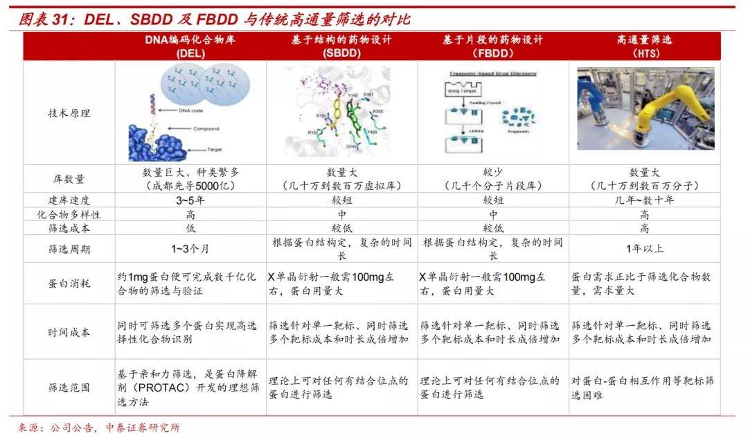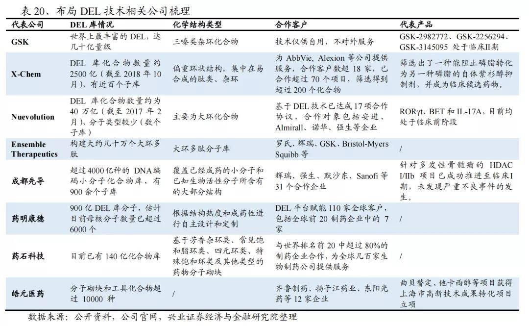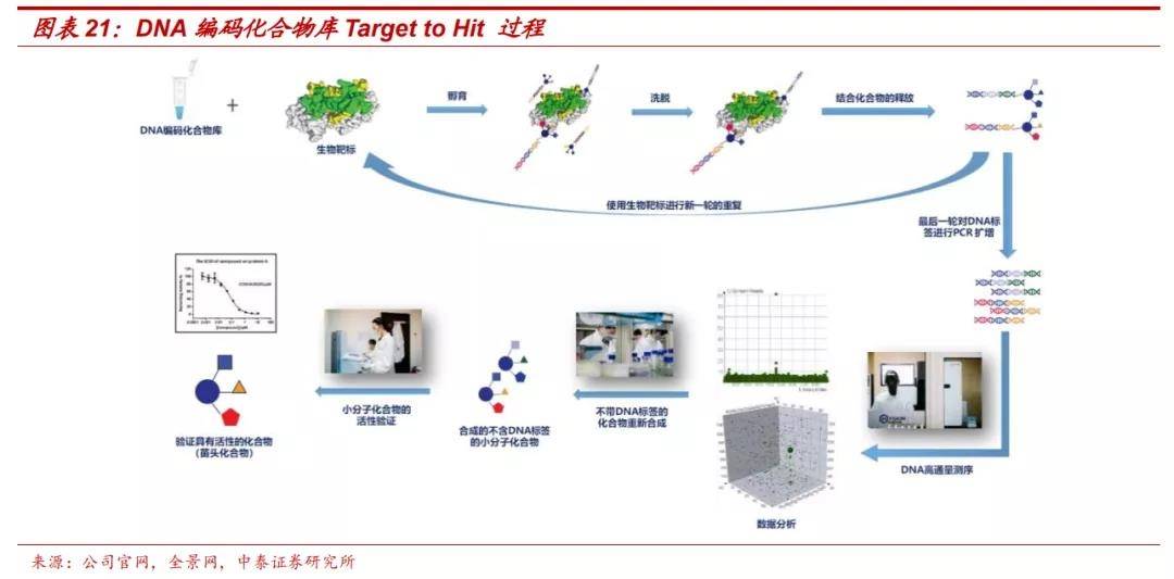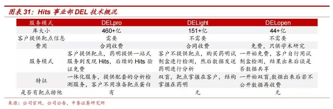 2、药明康德:于药明康德而言,DEL等前沿技术更多视作为流量入口的角色。2020年公司将DNA编码化合物库、蛋白生产和基于结构的药物发现平台(SBDD)进行整合,构建一体化靶标到命中化合物发现平台(HitS)。