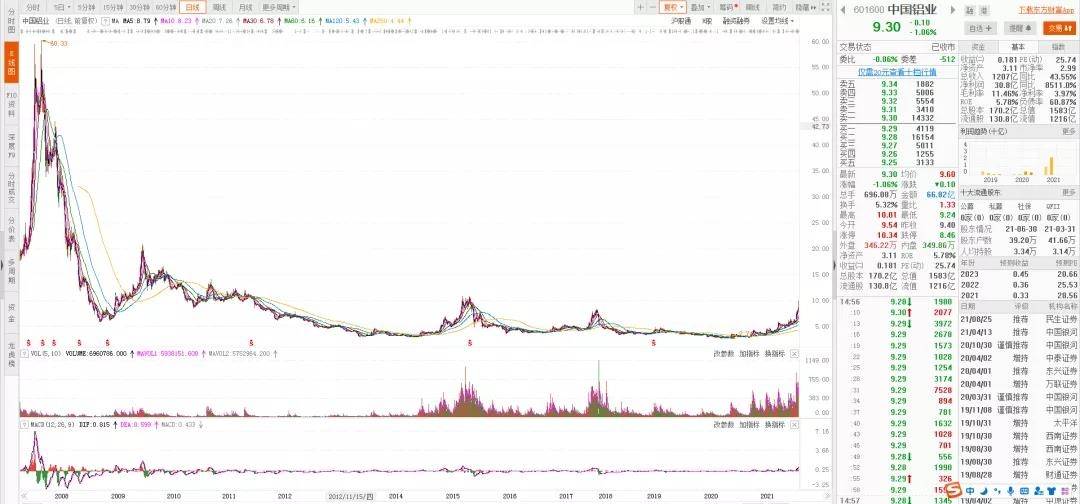 看似最近中国铝业、中国船舶等周期股短时间涨的很猛,但是如果把历史K线走势图拉长来看,就知道并非一朝一夕的事。