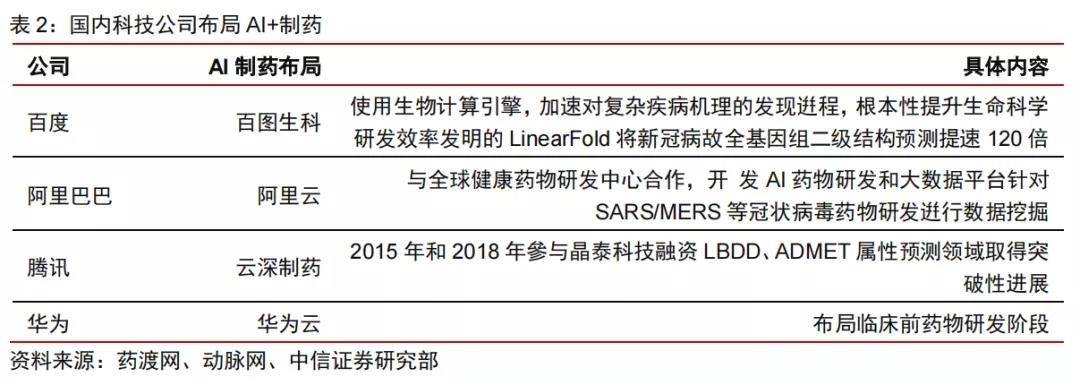 如此一来,百度、腾讯、阿里、华为等国内科技巨头都完成了制药领域的跨界,以求在“AI+新药研发”赛道占得一席之地。
