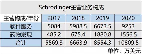 以2020年2月纳斯达克上市的Schrodinger薛定谔公司为例,公司营收分为两大块:软件收入和药物研发,其中软件收入是主要收入来源。