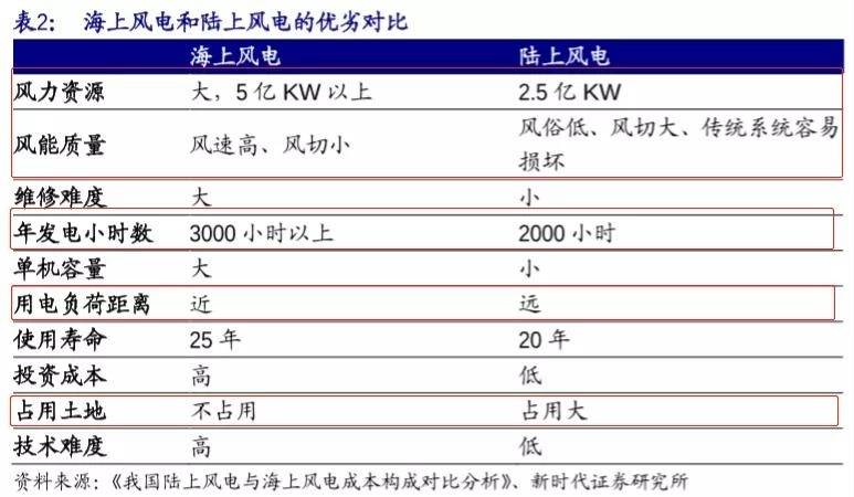 相较于陆上风电,海上风电市场空间和竞争优势更加明显。首先,我国海风资源主要集中于东南沿海地区,海上风场距离负荷中心较近,消纳能力强。其次,海上风电利用小时数超陆上风电,发电量优势显著。多因素之下,未来风电发展逐渐向海上转移将会是常态。