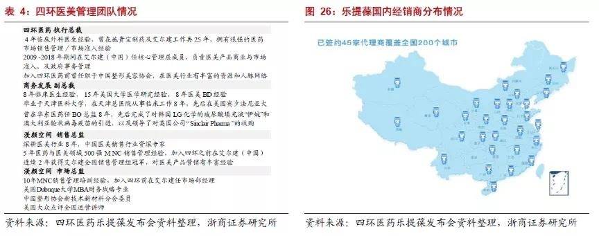同时,四环医美在商业化方面也投入了大量的资金和资源,医美核心团队成员来自艾尔建和辉瑞等国际巨头,并策略性地建立了直营和代理商团队,业务已覆盖全国200多个城市,覆盖医美机构超过2000家。