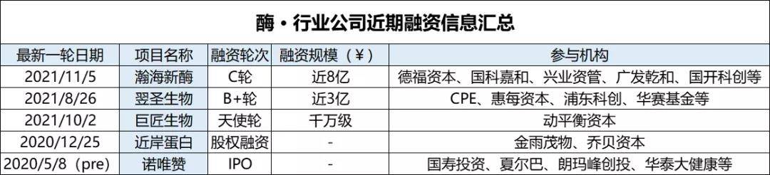 随着生命科学上游服务商诺唯赞的IPO成功,酶制剂行业引发了众多一级市场资本的热烈抢筹。近三个月内,行业内有3家公司获得融资,翌圣生物更是在两个月内完成了两轮合计超过5亿人民币的融资,可谓火热异常。