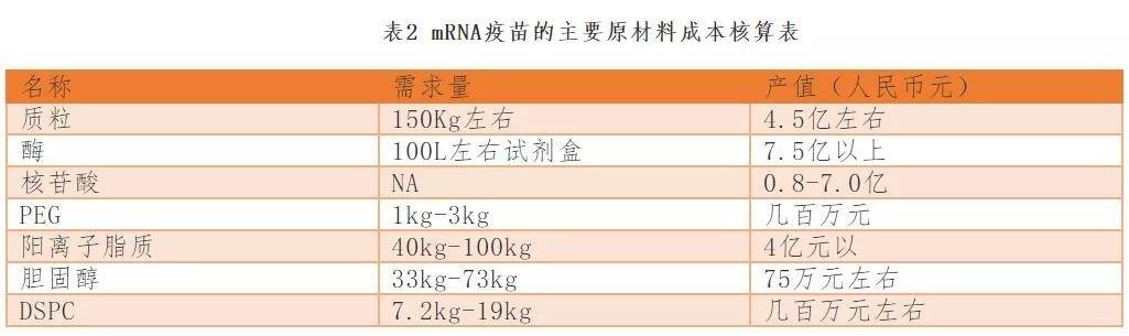 有业内人士以试剂盒进行推算:1ug的DNA模板产生200ug的mRNA,需要试剂盒2ul,试剂盒15元/ul,若1剂mRNA疫苗为100ug mRNA,则1亿剂mRNA疫苗,带来需求约是1亿ul,需求的规模在7.5亿元左右。